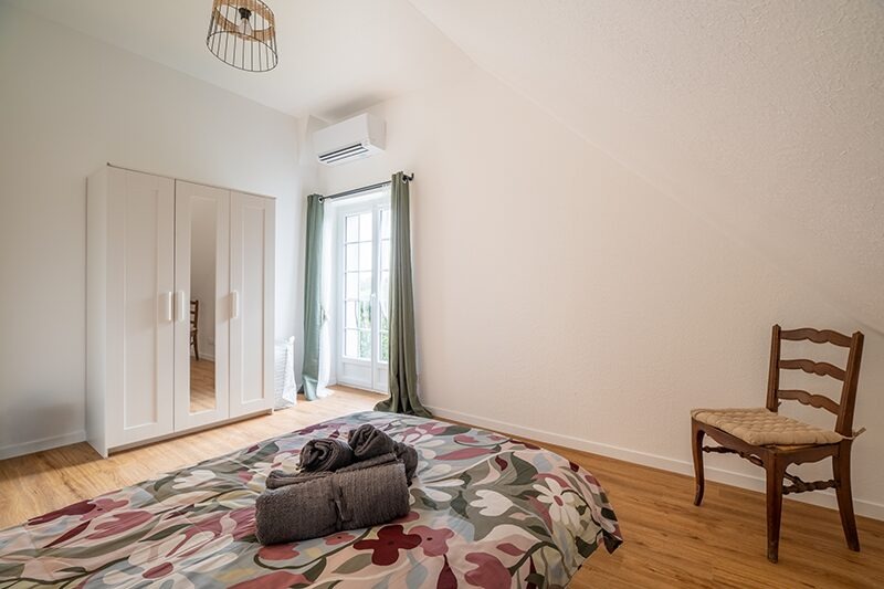 Trois chambres se situent au rez-de-chaussée, et se partagent une salle de douche. Cinq chambres se situent à l’étage et se partagent deux salles de douche. Les chambres sont meublées mais peuvent être décorées par les colocataires. Les chambres mesurent entre 9m² et 17m².