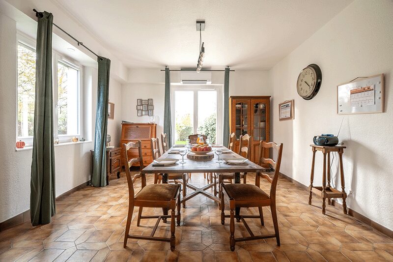 La Maison partagée de Vrigny est une grande maison bourgeoise rénovée, de 240m², répartis sur 2 niveaux avec ascenseur, et pouvant accueillir 8 colocataires. Les espaces de vie commune sont chaleureux et décorés soigneusement avec du mobilier de qualité. Ils se composent d’un grand séjour faisant office de salon et salle-à-manger, et d’une cuisine fermée.