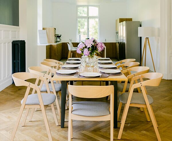 Les espaces de vie commune sont chaleureux et décorés soigneusement avec du mobilier de qualité. Ils sont composés d’un grand salon avec télévision, d’une cuisine entièrement équipée ouverte sur la salle à manger, d’une bibliothèque et d’un petit salon idéal pour accueillir les proches.