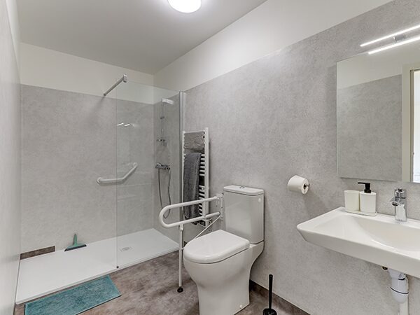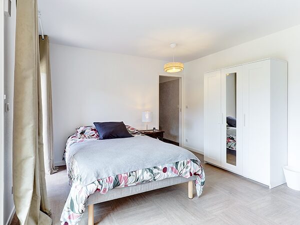 La Maison de Saint-Fiel est entièrement rénovée, elle couvre une surface de 235m², répartis sur 2 niveaux, et pouvant accueillir 7 colocataires. Les espaces destinés aux colocataires sont entièrement de plain-pied. Les espaces de vie commune sont chaleureux et décorés soigneusement avec du mobilier de qualité. Ils se composent d’une grande cuisine avec sa salle à manger, et d’un grand salon lumineux au centre de la maison, ouvert sur le jardin. Les chambres se situent de part et d’autre du salon. Trois chambres d’un côté, quatre chambres de l’autre côté. Chaque chambre dispose de sa propre salle de bain. Les chambres mesurent entre 11m² et 16m².
