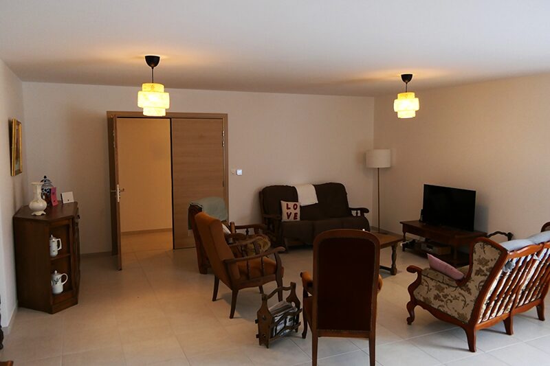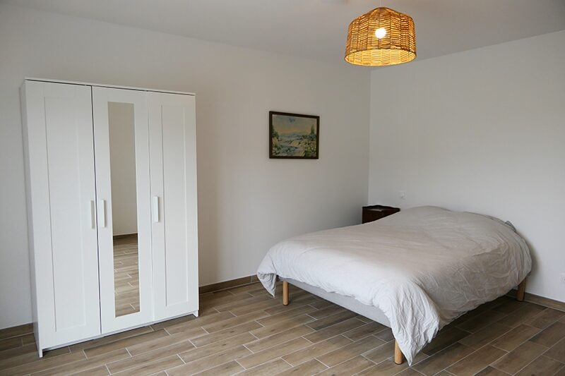 Huit chambres se répartissent le long d’un couloir. Chaque chambre dispose de salle de douche individuelle avec wc. Les chambres sont meublées mais peuvent être décorées par les colocataires. Les chambres mesurent toutes environ 19m². La Maison dispose d’un jardin clos de 2000m². La Maison est adaptée aux personnes se déplaçant avec déambulateur et fauteuil roulant.