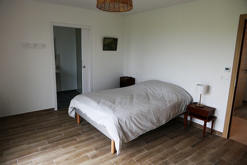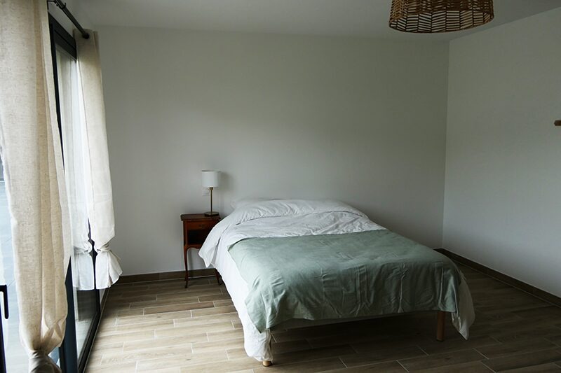 La Maison est une construction neuve, de 350m²,entièrement de plain-pied, et pouvant accueillir 8 colocataires. En forme de L, les espaces communs se trouvent d’un côté avec accès à la terrasse, et les chambres de l’autre côté. Les espaces de vie commune sont chaleureux et décorés soigneusement avec du mobilier de qualité. Ils comprennent un grand séjour faisant office de salon et salle à manger, ouvert sur la terrasse et le jardin, ainsi qu’une cuisine ouverte.