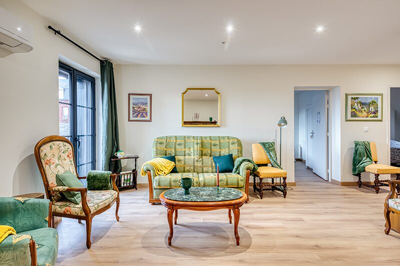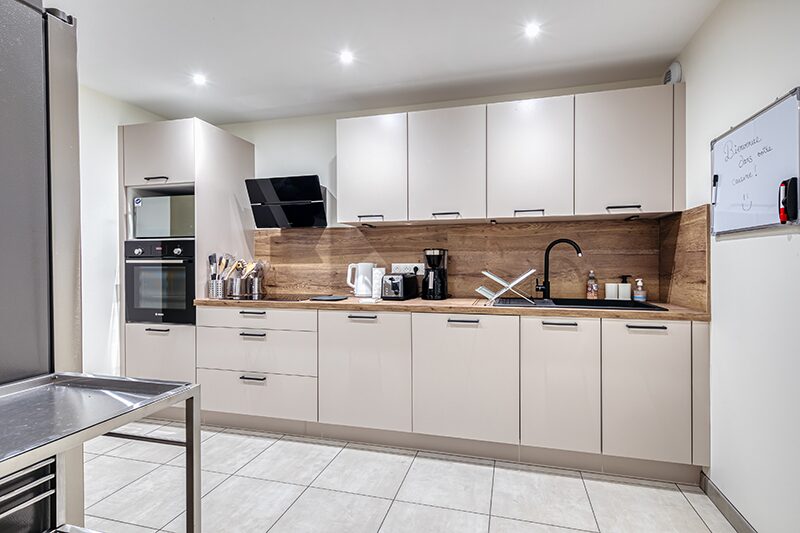 Les espaces de vie commune sont chaleureux et décorés soigneusement avec du mobilier de qualité. Ils sont composés d’un un espace salon, une salle à manger et d’une cuisine équipée.