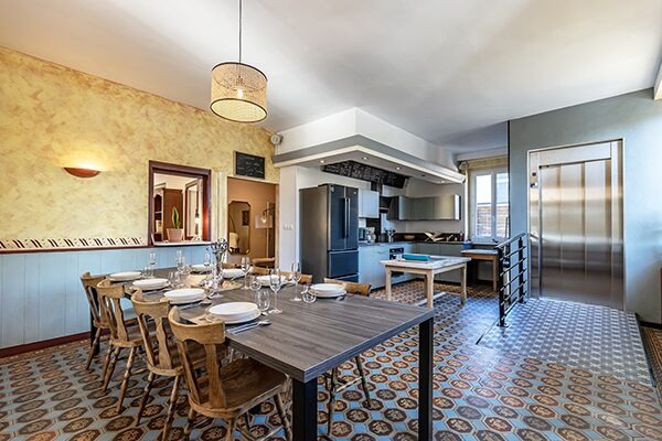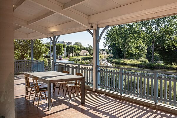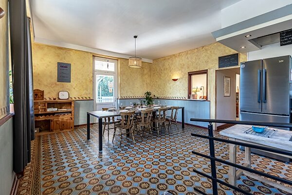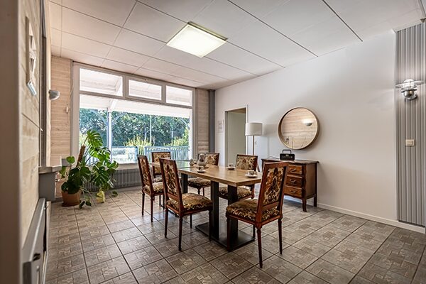 Les parties communes commencent par l’entrée, qui mène à la salle à manger avec vue sur le canal. La salle à manger avec sa grande table accueille tous les colocataires autour d’un repas familial et communique avec une terrasse et le salon, l’endroit parfait pour se détendre et passer un moment agréable avec la famille ou des amis. La cuisine ouverte permet de participer à la confection des menus et à la préparation quotidienne des repas. Les chambres, équipées et meublées, se situent sur les trois étages, accessibles par l’ascenseur ou par l’escalier. Vous pouvez bien sûr y ajouter vos meubles et affaires personnelles car vous êtes ici chez vous. A l’extérieur, une belle terrasse couverte donne sur le canal. Une bande de jardin de 500m2 complète le lieu.