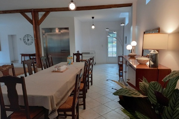Le rez-de-chaussée abrite les pièces de vie spacieuses, chaleureuses et lumineuses : salon, salle à manger et cuisine autour desquelles s’articule la vie de la maison; ainsi que 2 chambres avec chacune leur salle d’eau. Un ascenseur relie le rez-de-chaussée à l’étage des chambres, où 6 autres chambres ont été aménagées. Un jardin de près de 3000 m² entoure la Maison, et procure un espace de détente en plein air où les habitants de la Maison pourront profiter du calme de la campagne environnante.